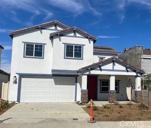 Quick move-in Brand New Home, 5 Bedroom home with large covered front porch. SOLAR IS INCLUDED, PAID FOR BY BUILDER. $12,000 FINANCING INCENTIVE IF YOU USE PREFERRED LENDER. NEW HOME COMMUNITY. Purchase at the Community of Artisan, located in the breathtaking city of Yucaipa, known as the Jewel of the Inland Empire and visually framed by the breathtaking San Bernardino Mountains. Energy-efficient SOLAR INCLUDED in price, this 5 Bedroom home with large beds and downstairs Bed & Bath, 3 Bath and 2 car garage single dwelling home boasts a Craftsman exterior and includes many upgrades; water resistant, hard surface, RevWood flooring on the entire first floor (with the exception of downstairs carpeted bedroom), Large kitchen island including bar seating. Shaker-style Alto (light grey) cabinets with chrome handles throughout home, Pantry cabinets & Built in desk with shelves. Quartz kitchen countertops with full subway tile backsplash, Stainless steel LG appliance package with free standing gas range, 5 burners and built -in Air Fryer, microwave & dishwasher & single basin stainless-steel sink. Open Floor Plan, pre-wired for two Wi-Fi access points, Ring doorbell included, prewired for electric vehicle in garage, upstairs Laundry Room with ample cabinet storage & upgraded Laundry Room Sink, Voluminous 9' ceilings throughout, Drop Zones (mud room) with cabinets and bench and USB charging stations. Premium Milgard windows. Finished 2-car garages with steel roll up garage door and Wi-Fi garage door opener, vinyl fencing, private driveway, close to sizeable community park with picnic