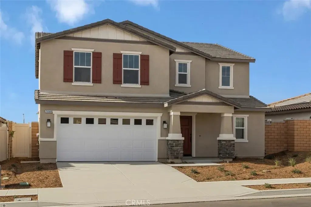 New Craftsman style two story, large home site. 4 bedrooms, 2.5 bath, with a den and a loft. Spacious great room. Large open kitchen with island, cream quartz counter tops, white cabinets and statin nickel hardware. Whirlpool dishwasher, electric range and microwave hood combo. Large primary bedroom, walk-in closet, separate tub and shower in primary bath. Upstairs laundry room. No HOA. Future community central park, which will feature ball fields, a basketball court and play equipment. Minutes to I-215 via Hwy. 74. Walking distance to local elementary and high schools. Shopping and dining nearby at Menifee Countryside Marketplace and Menifee Town Center. Adjacent to Marion V. Ashley Community Center and Park, which offers a gymnasium, fitness trails and picnic and play areas. Short distance to Lake Perris. Photo is a rendering of the model. Buyer can either lease or purchase the Solar.