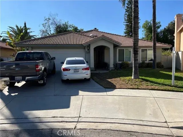 Charming single-story home with 3 bedrooms, nestled in a peaceful cul-de-sac within a quaint community. The open floor plan seamlessly connects the dining area, kitchen, and family room with 2 sliding glass doors, creating an inviting space for family gatherings. The living room and bedrooms have carpeted, while the kitchen features tile countertops. One of the bedrooms is currently being used as a weight room, offering versatility to the home. The backyards unique layout provides ample space for a pool, if desired, as well as room for a dog run that spans the length of the yardperfect for your furry family member. The spacious master bedroom includes a sliding door to the backyard, and the master bath offers dual sinks and plenty of counter space. As part of the East Highland Ranch Community, homeowners have access to fantastic amenities including a pool, children's play areas, sports courts, pickleball, tennis, a fishing lake, BBQ areas, and miles of walking, biking, and hiking trails. Dont miss the opportunity to own this rare and desirable single-story home in this beautiful community!