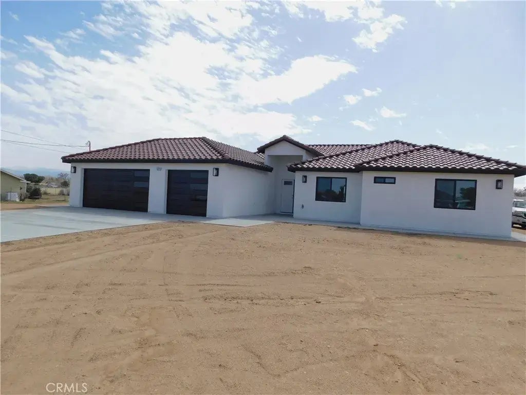 Stunning Brand-New Home in Hesperia! This beautifully crafted, brand-new home in Hesperia offers 2,413 square feet of luxurious living space, featuring a thoughtfully designed open floor plan. With 4 spacious bedrooms, including a large master suite, this home is perfect for family living. The master bedroom boasts a custom-tiled en suite bathroom, complete with dual sinks, a walk-in closet, and elegant finishes. Three additional generously-sized bedrooms share a well-appointed full bathroom, and there is also a convenient guest half-bathroom. The kitchen is a chef's dream, showcasing sleek modern cabinetry with soft-close doors and drawers, stunning quartz countertops, and a large central island. High-end stainless steel appliances enhance the open-concept layout, which flows seamlessly into the comfortable and contemporary living spacesperfect for both entertaining and relaxing. Additional features include durable water-resistant laminated flooring throughout, vaulted ceilings with ceiling fans, and wide hallways that add to the home's open and airy feel. The oversized laundry room, complete with upper cabinets, is conveniently located next to the kitchen. This home also includes a 3-car attached garage and sits on a generous 1.36-acre lot, offering plenty of space for your outdoor toys, future pool, or other activities. Located near Cottonwood Avenue and just a short drive from Ranchero Road, this home provides both tranquility and convenience. A standout feature is the seven solar panels included with the home, which come with no monthly paymentsoffering energy savings