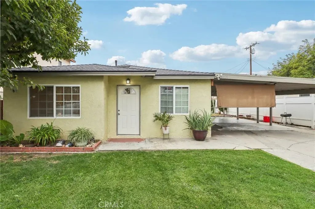 New Roof on Main Structure! This inviting home boasts a freshly painted interior, setting a warm and welcoming tone throughout. The renovated kitchen shines with sleek quartz countertops and modern cabinetry, providing ample space for meal preparation. Stylish laminate flooring and recessed lighting enhance the bright, airy feel of the living areas, while the updated bathroom offers contemporary finishes. Outside, a covered carport ensures convenient parking, and lush fruit treesincluding apple, guava, lime, avocado, and mandarinadd a touch of natural beauty. The spacious lot offers extra room for expansion or a potential ADU. Ideally located near the newly constructed Los Serranos Park and award-winning Chaparral Elementary School, this property is just moments from Los Serranos Golf Course, shopping centers, and easy access to major freeways, offering both comfort and convenience.