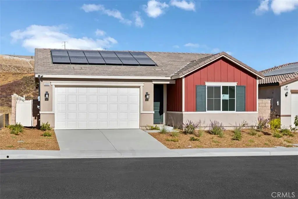 Welcome to your dream home in the vibrant city of Lake Elsinore, nestled within the sought-after Terracina community. This brand-new built farmhouse, its offering unparalleled craftsmanship and attention to detail. This home features three bedrooms and two bathrooms, providing ample space for comfortable living. Enjoy the convenience of being near a new park complete with baseball fields, a soccer field, basketball courts, and charming gazebos with grills, perfect for outdoor gatherings and recreational activities. Commuter friendly near 15 Fwy and shopping centers. Photo is a rendering of the model. Buyer can either lease or purchase the Solar.