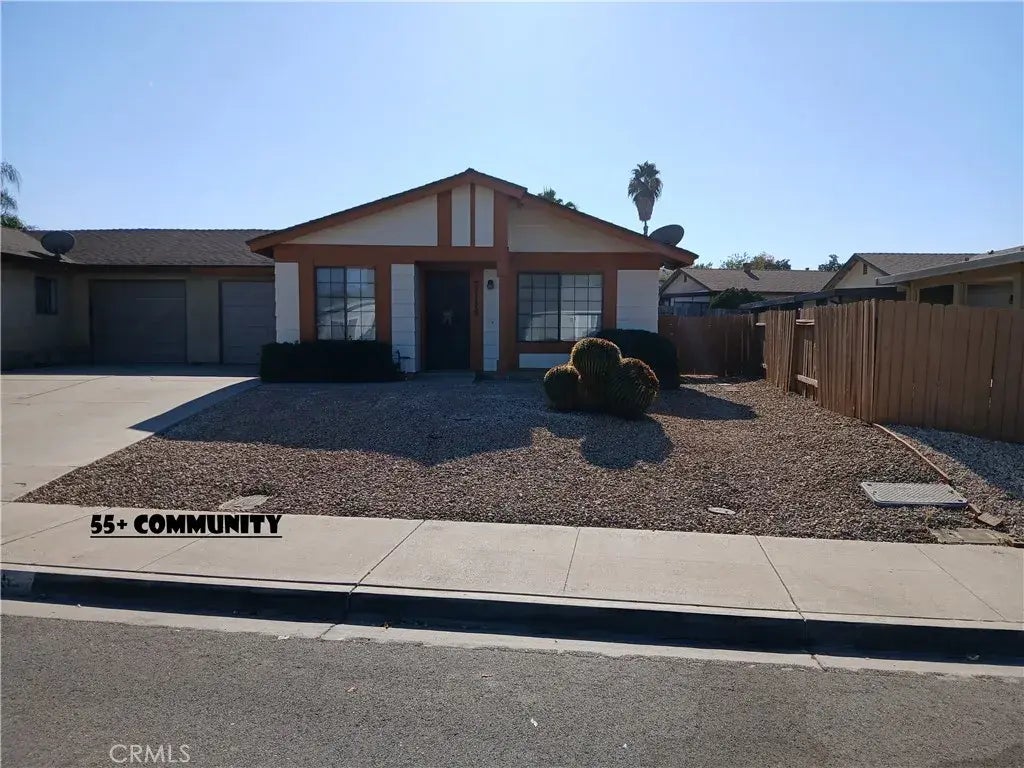 Charming 2-Bed, 2-Bath Home in Menifee's 55+ Hermosa Community! Dont miss out on this beautifully maintained home. This gem offers: Spacious Living Areas: A large living room with seamless flow into the dining room featuring stylish LVP flooring. Open Kitchen: Solid surface countertops, white cabinetry, recessed lighting, and ample storage. Perfect for cooking and entertaining! Comfortable Bedrooms: The master bedroom boasts back patio access, a walk-in closet, and an ensuite bathroom with a walk-in shower and bench. The secondary bedroom also features back patio access and a cozy design. Modern Features: Updated light fixtures, window blinds, plush carpeting, and durable LVP flooring throughout. Outdoor Bliss: A huge covered patio in the fully fenced backyard offers privacy and is perfect for relaxing or hosting gatherings. Additional highlights include a one-car garage with a roll-up door, a covered front porch, and a central location near shopping, dining, and conveniences.