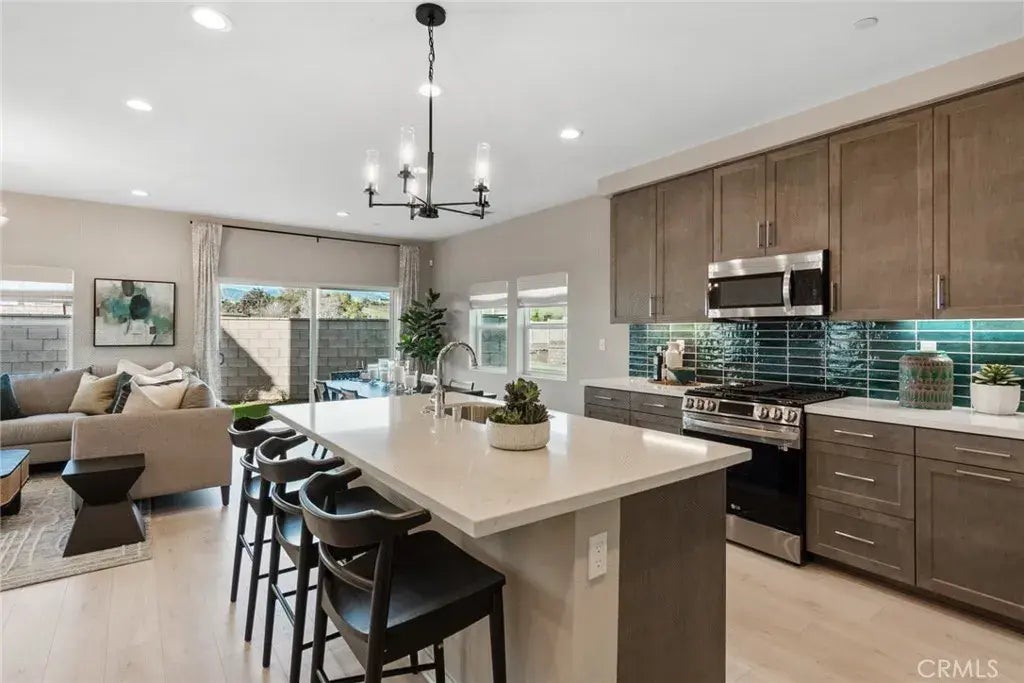MODEL HOME, MODEL HOME, NEVER LIVED IN MODEL HOME WITH UPGRADES GALORE. SOLAR PANELS FREE. Purchase at the Community of Artisan, located in the breathtaking city of Yucaipa, known as the Jewel of the Inland Empire and visually framed by the San Bernardino Mountains. Great Open Floor Plan with 3 Bd plus Loft, 2.5 Bath & 2 car garage, this single-family home boasts a Craftsman exterior. Model Home includes many upgrades, including RevWood flooring on first floor, recessed lighting in Great Room, Loft and in all Bedrooms, Large kitchen island including seating bar with upgraded pendant light, kitchen under cabinet lights, Huge Walk-In Pantry w/ clear glass door, Shaker maple Cabinets with Alto finish (light grey) throughout home, Quartz kitchen countertops & custom subway tile full backsplash, included LG stainless steel refrigerator, Stainless steel LG appliance package with free standing gas range, 5 burners, microwave and dishwasher. Primary Suite with walk in closet, lush carpet, 36" high custom designed Shaker maple cabinets with upgraded Quartz counter tops, dual sinks with Peerless single lever chrome faucets, and oversized vanity mirror and tiled floors. Whole house Wi-Fi pre-wire & finish, Laundry Room with included washer/dryer, Desk at BD #3, Voluminous 9' ceilings throughout, superior Milgard Windows, Drop Zone with USB charging station. Additional custom upgrades, too numerous to list. Finished 2-car garage with steel roll up garage door and Wi-Fi garage door opener, Electric vehicle prewire in garage, RING doorbell, Alarm system, rear and side yard vinyl or block