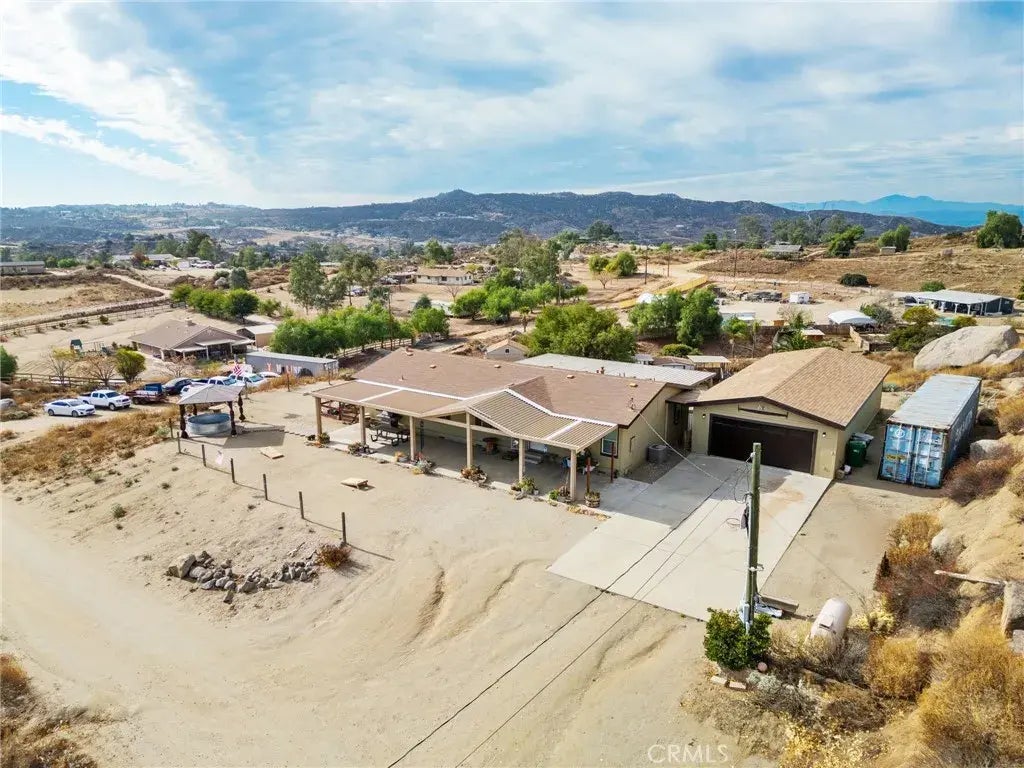 6 CAR GARAGE! This manufactured home on a permanent block foundation in Nuevo offers room for everyone and sits on just over 2 acres of land & offers 4 good sized bedrooms, 2 full bathrooms & open living spaces making this ranch a perfect space to entertain family, park your toys or endless possibilities for expansion. Eat-in kitchen opens to the separate family and dining rooms with a slider that leads out back to an enormous, covered patio that runs most of the full length of the house. A perfect outdoor space to BBQ in the back or front and enjoy the sunset and mountain views! Spacious primary bedroom with an ensuite bath w/ dual sinks, walk-in closet, sunken tub & separate shower stall. Other features include: indoor laundry room, vaulted ceilings, freshly painted exterior and a pull through(30X50) 6-car garage. As if it couldnt get any better, the property is immediately fenced for pets at the house but offers access to the lower-level lot for additional usable land for horses, parking to store RV/boats/toys/tractors or potential space for another structure. This unique mini ranch offers seclusion and breathtaking panoramic viewstruly a must-see! Dont miss your chance to own this exceptional horse property!