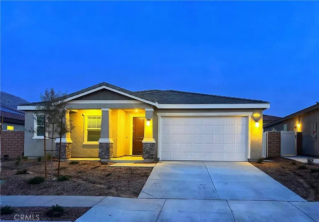 Brand new single-story home. Move-In ready. 4-bedrooms and 2.5-bathrooms, Space for Office, 2,495 sq ft living space. This single-story home is located in the desirable Spring Mountain Ranch Community. The home features open floor plan, double door to the backyard, perfect for modern living. Features a sizable kitchen with ample counter space and cabinets, equipped with modern appliances. Each bedroom has large windows that flood the rooms with natural light. The entire home is upgraded with hardwood flooring. Built-in lighting in each bedroom enhances ambiance and functionality. Just 10 minutes drive from the University of California, Riverside (UCR), and minutes away from many shopping centers and recreational park. An exceptional place to call home.