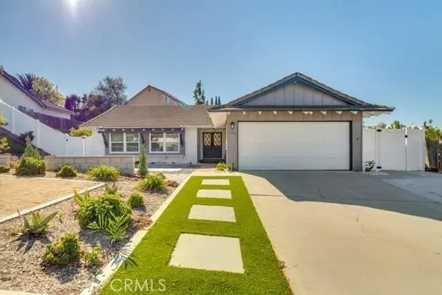 This beautiful completely renovated 3 bedroom, 2 bath home is situated on a large corner lot. It has a new AC, Heater, New windows new oversized slider doors, new flooring, , water heater and new garage door and an upgraded Electrical panel. It also has new landscaping in the front and back. This home has been completely renovated from top to bottom. The renovation created a beautiful open floor plan that lets in alot of light with new quartz countertops and new appliances, creating a beautiful light and bright home. The updated master bedroom has cathedral ceilings and a new slider overlooking the green artificial grass in the backyard, making it a peaceful lovely master retreat. The redesign includes a large walk-in closet, and the master bath is a beautiful spa like bathroom that includes a vanity area and tile throughout. Extra parking has been created to 3 cars in driveway. Newer fence in front. It has new landscaping with drought tolerant watering system and a wonderful front courtyard with a new built wall that has electrical running to it. Great for parties with friends. It is like buying a new home but with very little left to do. The roof is newer and has tile wood like material that will stand the test of time.