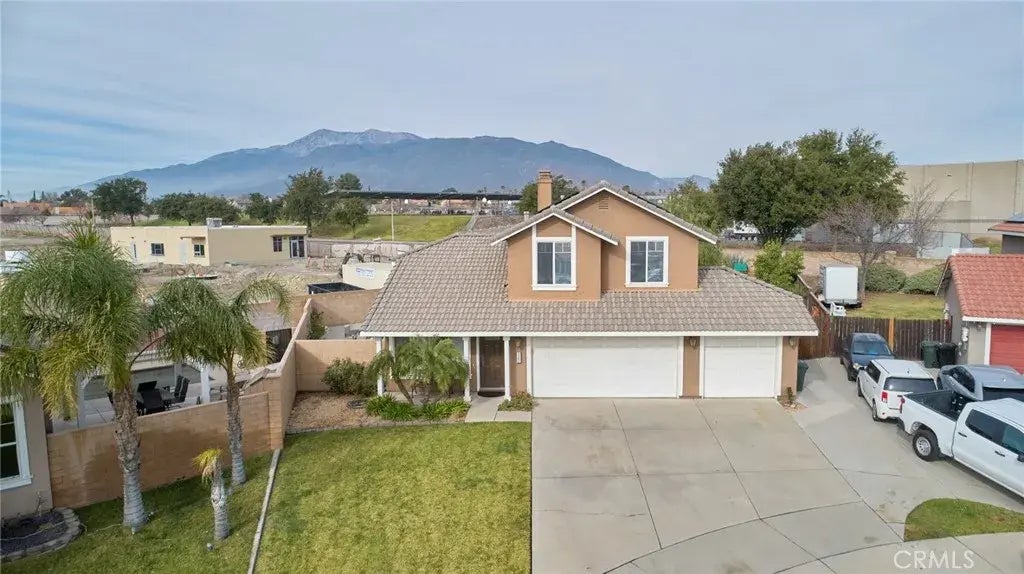Welcome to your dream home at the end of a beautiful cul-de-sac in North Rialto! This stunning 4-bedroom, 3-bathroom residence features a versatile first-floor bedroom and a full bath, perfect for guests or multi-generational living. The luxurious master suite upstairs includes a private balcony where you can sit and enjoy breathtaking mountain views or your stunning backyard. The master bedroom is beautifully enhanced with two custom barn doors, adding a unique touch of style. The master bath is a true showstopper, featuring a gorgeous custom shower, dual sink vanity and a spacious walk-in closet for all your storage needs. The kitchen is a chef's delight, featuring modern appliances, ample counter space, and a stunning bar area that seamlessly connects to the family room, perfect for effortless entertaining. The home also includes a spacious 3-car garage and a large driveway, offering plenty of parking options. With solar already paid off, youll start saving on energy costs from day one. Step into the beautifully landscaped backyard, a private oasis adorned with a thriving lemon tree and a fruitful avocado tree, making it an ideal space for gatherings or peaceful relaxation. Nestled in a neighborhood that radiates pride of ownership, this home truly stands out. Dont miss this incredible opportunity to make it yours!