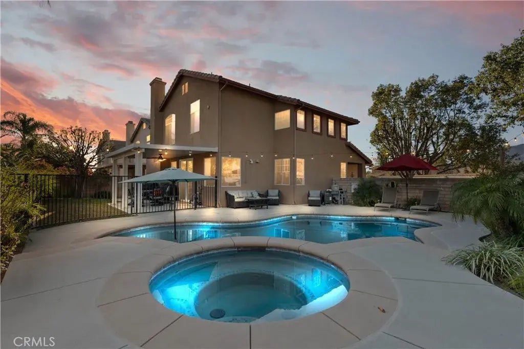 ***Welcome to Hunter's Ridge in North Fontana*** Don't miss out on this incredible opportunity to own this gorgeous POOL & SPA and FULLY OWNED SOLAR home, situated on a desirable corner lot!! As you approach, enjoy the tasteful curb appeal and mature landscaping. Upon entry, enjoy the wonderful high ceilings in the living room and formal dining areas. The beautifully renovated kitchen features plenty of cabinets and counter space, as well as a custom backsplash, stainless steel refrigerator, range, built in microwave and dishwasher. The family room features a warm and inviting fireplace and entertainment nook. The room located downstairs is currently being utilized as an office, but also has potential to be used as a downstair bedroom for family or guests, and features it's own walk in closet. The laundry area is also located downstairs. Upstairs, you will find the primary bedroom that features a walk in closet and en-suite primary bathroom. The remaining bedrooms are also generously sized. Other notable features include the mountain views, alumawood patio for back yard entertaining, recently replaced A/C and Furnace, recessed lighting, updated flooring, closet systems in select bedrooms, whole house fan, TOO MUCH TO LIST!! Located in proximity to shools, parks, freeways, shopping, and so much more. Act now, before it's too late!