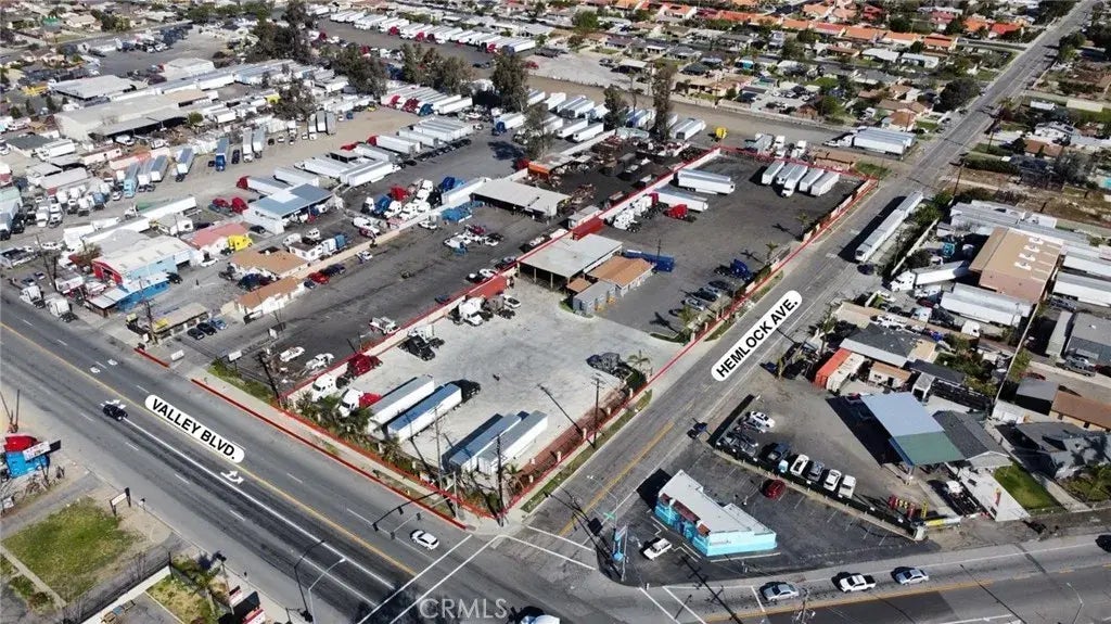 Allied Commercial is pleased to present an exceptional turnkey opportunity for users seeking an ideal location for truck parking, repair, sales, and or outdoor parking requirements. This 2.2 +/- Acre parcel boasts fully fenced, paved grounds with suitable drainage accompanied by an approximately 4,000 +/- SF overhang canopy clearing for truck service which includes power throughout. Adjacent you will find two contiguous office buildings at approximately 900 +/- SF. Positioned with 175 linear feet of frontage on Valley Blvd, the location ensures prime visibility and accessibility through Hemlock Ave with two entrance/exit points. The location features prime access just off the 1-10 Freeway between cherry Ave and Citrus Ave enabling seamless transportation logistics.