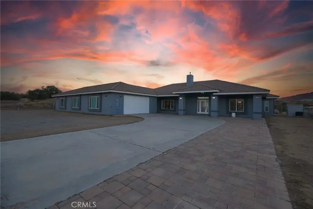 Welcome to this freshly painted single-story luxury estate in exclusive West Oak Hills, offering unparalleled panoramic views and endless possibilities. Nestled on a private, quiet road, this stunning property boasts no HOA, low taxes, and no solar, giving you the freedom to manage your energy options your way. This true 3-bedroom, 3 full-bath home features an expansive and unique floor plan with huge bedrooms, a private courtyard designed for desert living, and the flexibility to function as a 5-bedroom, 3.5-bath home if desired. The property includes a 4-car tandem garage, perfect for your vehicles, toys, or storage needs. The flat, usable land offers easy access for building your dream ADU or accommodating up to 8 horses, making it ideal for equestrian enthusiasts or those seeking space to expand. Multiple RV cleanouts further enhance the convenience for adventurers and travelers alike. Inside, youll find elegance and thoughtful design at every turn. The master suite is a true retreat, featuring a fireplace, a spa-like bathroom with his and hers vanities, a large, luxurious bathtub and separate shower, and a massive walk-in closet. The chefs kitchen boasts an open layout, custom cabinets, a stainless steel Viking 4-burner cooktop, double ovens, granite countertops, and an abundance of natural light. The open-concept great room includes vaulted ceilings, a pellet stove, a wet bar with granite counters, a built-in entertainment center, and access to the backyard, seamlessly blending indoor and outdoor living. The guest wing offers a spacious bedroom, a bathroom with a walk