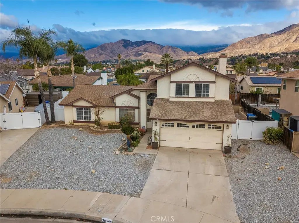 Welcome to Tonner Drive! This East Highland Home offers mountain views and a beautiful pool and spa. This two-story home has a functional floorplan with 3 bedrooms upstairs and 2 bedrooms downstairs. Downstairs also offers a den and convenient powder room. The master bedroom is located upstairs. Gorgeous entry into a formal living room with vaulted ceilings. Spacious dining room. The kitchen features a gas range, dishwasher, and breakfast bar and is open to the family room which offers a sliding glass door to backyard and a fireplace. The pool deck is lovely, and the pool is fenced from the main part of the backyard. Must see!