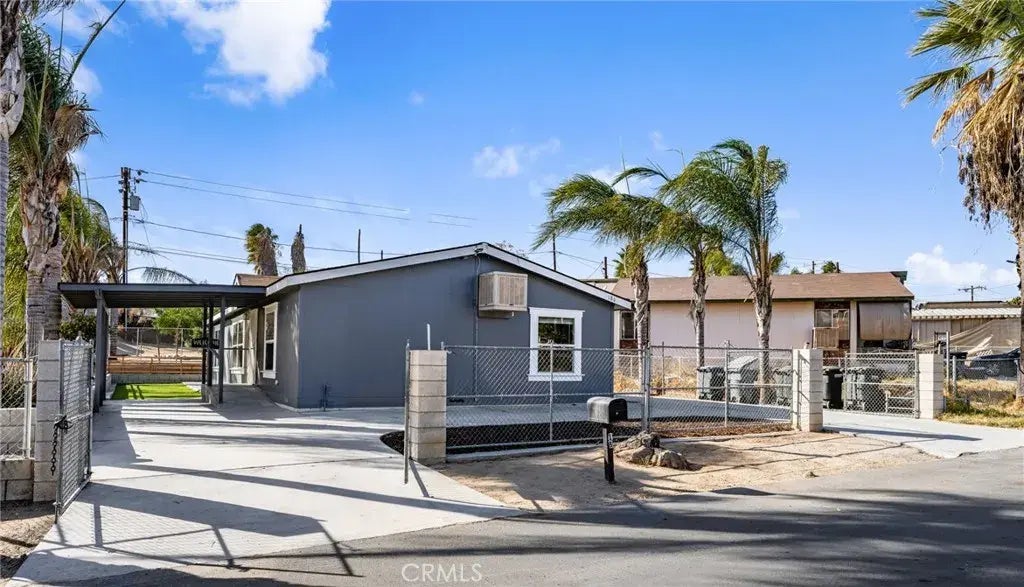 Welcome to this charming 2007 Ranch-style Manufactured Home, securely set on a Permanent Foundation and move-in ready! Recently refreshed with NEW exterior and interior paint, this residence sits on a generous 3-tier lot featuring full fencing and artificial turfperfect for outdoor living and low maintenance. The property includes dual carports, providing ample parking space for vehicles and additional storage options for an RV, boat, or workshop equipment. Inside, youll find 3 bedrooms and 2 bathrooms thoughtfully designed for comfort and functionality. The spacious living and dining area flows seamlessly into a bright kitchen, enhanced by a skylight, center island, and sleek white appliancesideal for entertaining family and friends. Enjoy the convenience of wood laminate flooring, new carpeting in all bedrooms, and walk-in closets that offer plenty of storage space. Additional features include an indoor laundry room with cabinets, a convenient back door for easy outdoor access, and a Central HVAC system with an optional wall unit in the third bedroom for personalized climate control. The oversized master bedroom comfortably accommodates a King-size bed and boasts a generous walk-in closet along with two additional closets. The ensuite bathroom features a large soaking tub, providing a perfect retreat for relaxation. Located close to freeway access and shopping centers, this home offers both tranquility and convenience. Dont miss the opportunity to make this delightful property your new home! Schedule your tour today and experience all it has to offer.