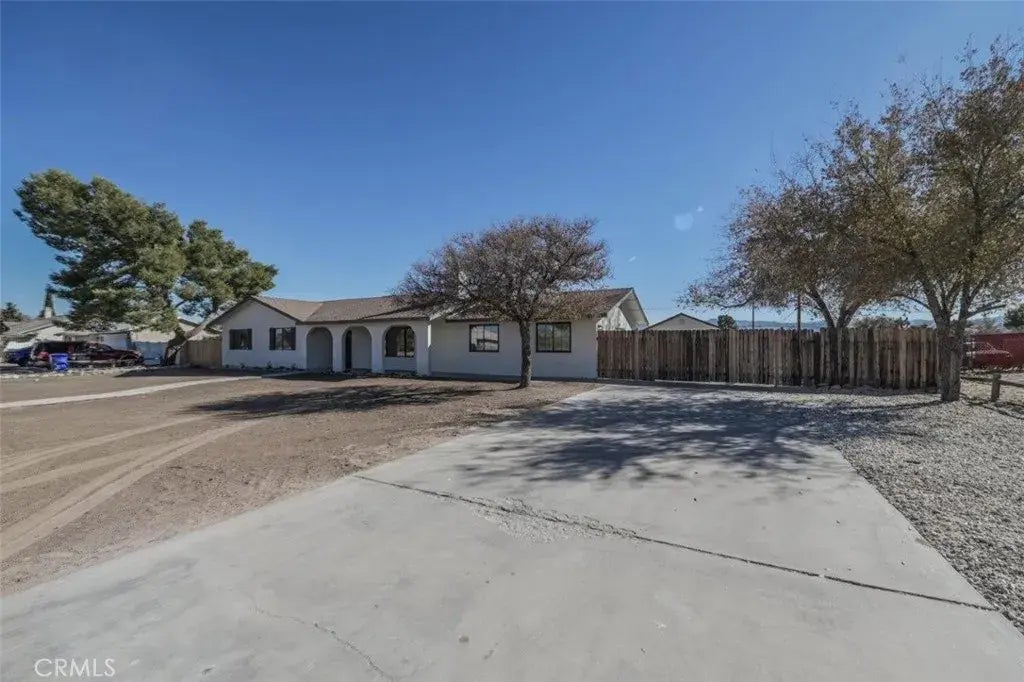 Searching for a freshly remodeled 3 bedroom 2 bath move in ready Apple Valley home with clean modern look where you can simply move in, unpack, and relax? This beauty is the one plus offers so much more. This residence has been modernly renovated throughout and bursting with character. Set in a tranquil neighborhood, this home offers the modern comforts and a life of leisure. Freshly painted exterior with a detached garage in the back and on over an acre lot! The lot is low maintenance, with shade trees and plenty of room on both sides for RV, boat or trailer. Inside, the open-concept interior is clad in neutral tones and offers so much to the new owners. Radiant sunlight spilling through large windows combines with recessed lighting to create a warm, welcoming ambiance complemented with newly installed wood laminate flooring. Try out new recipes in the reimagined kitchen equipped with a suite of brand-new stainless-steel appliances, including a stove, dishwasher, and stainless steel vent hood. Your new chic kitchen features modern quartz countertops, and plenty of gorgeous white cabinetry ready for you to entertain with this delightful culinary space. Kitchen opens up to the dining room and living room with cozy rock fireplace as well as the indoor laundry room on the other side. Retire to the comfortable proportions of your newly carpeted private retreats, all graced with ceiling fans and lots of natural light. Primary bedroom offers new carpet, paint, ceiling fan and private bathroom. Crafted for outdoor gatherings, the backyard is the perfect spot for your weekend BBQs.