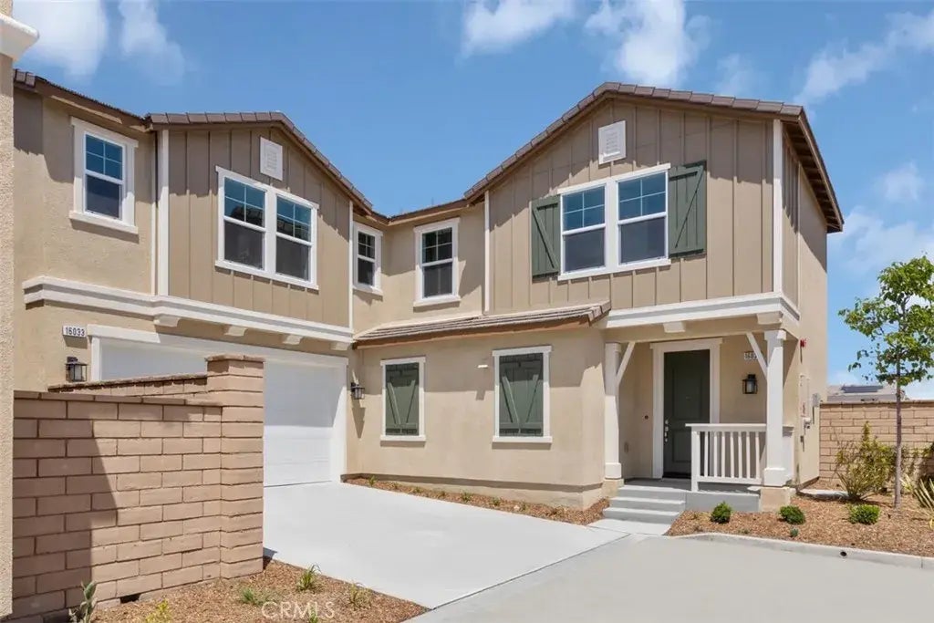 This to-be built detached home with driveway and covered patio is located near newly opened Preserve Town Center and Cal Aero Academy. It features an open concept floor plan. The spacious great room overlooks a modern kitchen with Quartz counter-tops with custom subway tile full backsplash, white raised cabinets with Soft Close drawers, single basin sink with professional arch faucet, and Whirlpool energy efficient appliances. 1st floor bedroom and full bath, 3 additional bedrooms upstairs with a spacious loft/office perfect for home office or separate T.V room. Luxury vinyl plank plank and textured carpet thru out the home. Energy-efficient features include Generation Lighting LED fixtures, Moen WaterSense faucets and showerheads, all electric appliance and a 100% energy star rated home. Solar Panels are for lease or purchase with Sun Power. Zoned for Prestigious Chino Hills High School Photo is a rendering of the model. Buyer can either lease or purchase the solar.