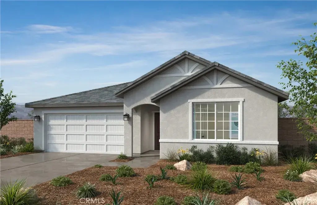 Wow! What a beautiful single-story home!! This home is an ENERGY STAR certified home which includes the latest in-home insulation and dual-pane windows delivering significant savings on utility bills when compared to a used home and supporting healthier indoor environments! Luxury Vinyl Plank Flooring, Light Gray Shaker Style Thermofoil Cabinets, Granite Kitchen Countertops with Full Tile Backsplash, and Stainless Steel Dishwaher, Stove, and Microwave, and more! Quick and easy access to I-215 and Hwy. 74, Close to Metrolink rail service. Photo is a rendering of the model. Buyer can either lease or purchase the Solar.