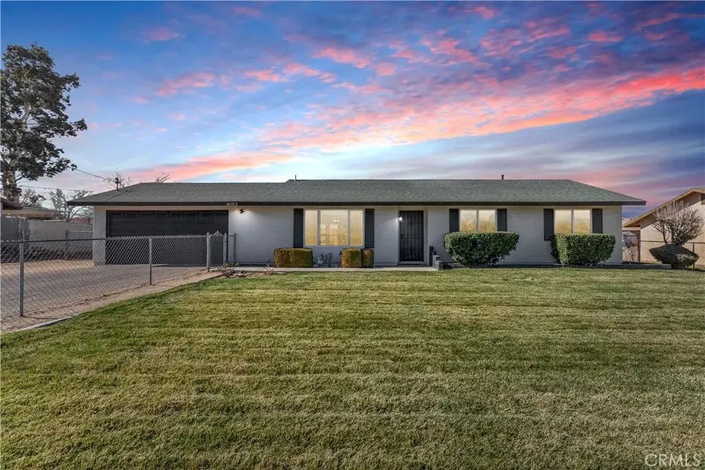 Located in the desirable and quiet Mesa neighborhood of Hesperia, this charming home offers 3 bedrooms and 2 bathrooms. The spacious master suite features a beautifully remodeled bathroom, adding a touch of luxury. Recently updated, the home boasts luxury vinyl plank flooring throughout, fresh interior and exterior paint, and updated windows. The AC and heating system were also recently replaced for enhanced comfort. Ceiling fans in every room provide added convenience. Kitchen allows for plenty of natural light with french doors leading to the outside deck area. Enjoy a lush front lawn and fully fenced front and back yards, complete with fruit trees. The property also features a double-car garage and RV access, making it a perfect blend of comfort and functionality.