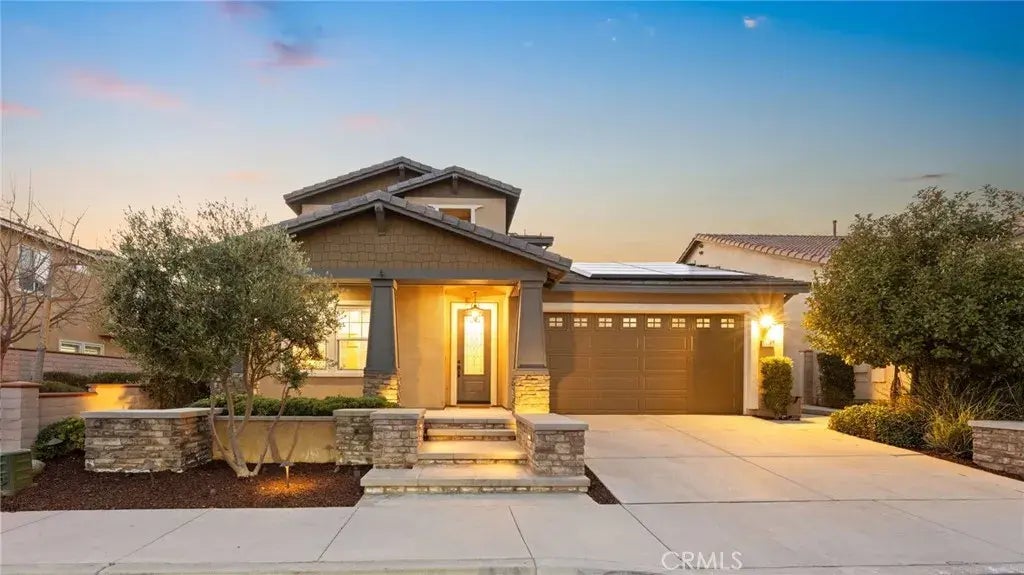 Welcome to the sought-after Roripaugh Ranch, where resort-style amenities meet energy-efficient living! This stunning home is equipped with a fully owned 36-panel Tesla Solar System and two Tesla backup batteries, allowing the current owners to enjoy zero electricity costs since it's installation! Step inside to discover a thoughtfully designed floor plan featuring a MAIN FLOOR primary suite plus a Jr. Suite with a private bath, in addition to a convenient guest half-bath on the main level. Rich hardwood floors flow seamlessly throughout the main floor, leading to a spacious great room with custom media built-ins, a beverage bar, and a cozy fireplace. The chefs kitchen boasts a large center island with bar seating, custom cabinetry with glass inlays, granite countertops, a subway tile backsplash, built-in stainless steel appliances, and an oversized walk-in pantry. Upstairs, the home continues to impress with durable engineered wood flooring in the hallway, two secondary bedrooms, and the shared bath, along with a HUGE bonus room perfect for a game room, home theater, or additional living space. Step outside to your fully landscaped backyard retreat, complete with an alumna wood patio cover, built-in spa with custom decking and stone accents, a secondary patio, and mature landscaping for added privacy. All of this is nestled within the exclusive gated community of Roripaugh Ranch, offering parks, walking trails, a community pool, sports courts, a fitness center, and picnic areas. Dont miss the opportunity to own this beautifully upgraded, solar-powered home with true pride
