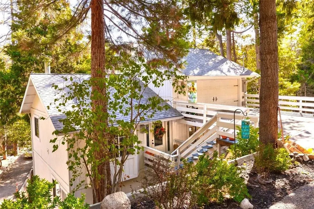 Location! Location! Location! Just a blocks walk to Lake Gregory from this beautiful home in the highly desirable area of San Moritz. This professionally updated home was completely redesigned in 2020 with the latest in Lake Style living design details. The comfortable interior includes a spacious chefs kitchen with a built in dining banquette which opens to the entertaining family area. The Living Room features vaulted wood ceilings with a floor to ceiling natural stone wood burning fireplace. A light and airy home office with custom built in shelves offer comfort and convenience when working from home. Luxury Vinyl Wood Plank Waterproof Flooring throughout the entire home affords both beauty and low maintenance. 3 bedrooms, 3 bathrooms include an oversized Master Suite with en-suite Bathroom, a walk-in closet and an expansive private Trex Deck. Cost saving updates include a newer (2022) energy star rated cool roof designed to reflect heat, a recently installed (2023) energy efficient heating and air conditioning system and an updated 200 amp electrical panel to power all of your electrical needs. Have an electric car you need to charge? This house includes it! Deep level entry double car garage has newly installed oversized Parking Deck. 2 additional storage rooms below to store all of your seasonal items is a real bonus. Freshly painted exterior in RainX water beading specialty paint and Leaf Guard Rain Gutters installed for a low maintenance exterior. Whole house water purification system and all major appliances are included.