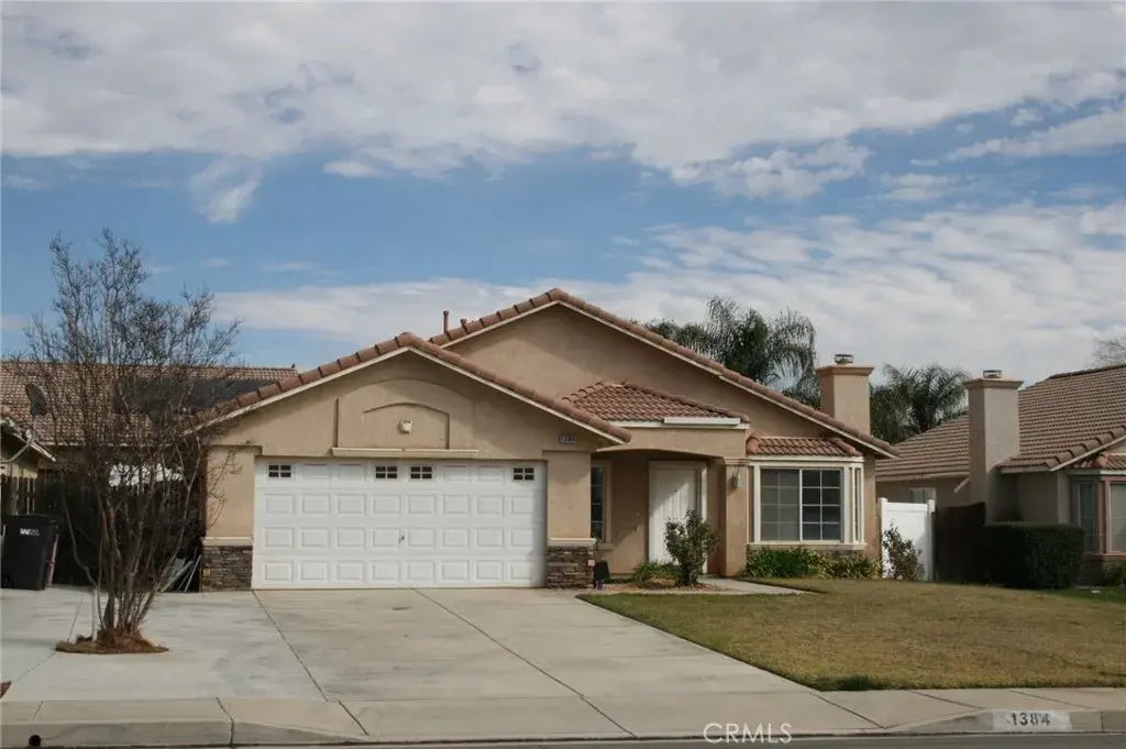 NO HOA. LOW TAXES. Make this home yours! A new coat of paint and carpet is all that is needed to make this home fit your needs. Right when you walk in, you will be greeted with a living room with a fireplace, high ceilings and great spacious feeling. Formal dining kitchen is right besides with tiled flooring. [4 bedrooms, 2 baths.] Main bedroom boasts dual sinks, dual closet space, and a walk in tub. 3 bedrooms have great lighting and perfect for guest bedrooms/office/etc. Family room is connected to the breakfast nook area and flows into the kitchen area. Kitchen has dual sink, dish-washing machine, oven, microwave, and overhead vent. Front yard is simple to maintain with room for 3 vehicles, and 2 in the garage. Backyard boasts a covered patio with elevated planters. All info deemed reliable but not guaranteed and should be independently verified.