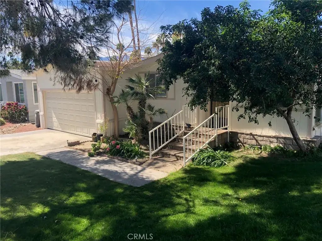 BACK ON THE MARKET!! Nestled in the highly sought after Desert Sands Mobile Home Community is 1142 Via Feliz. This delightful property features 2 spacious bedrooms and 1 full bathroom. The living area is bathed in natural light, creating an inviting space for entertaining guests or enjoying quiet evenings at home. The roomy kitchen is truly the heart of this home with an adjacent Dining Room that serves as a center gathering spot for all whether you're cooking up a feast or sharing a casual meal. The 2 spacious Bedrooms offer large walk-in closets and are ready for you to update with your style and decor. The inside laundry area with cupboards is an added convenience. The home includes an Attached 2 Car Garage with direct access to the interior. The backyard is lush with mature landscaping making it a perfect oasis for relaxing on those long summer nights. Located just minutes from shopping, dining, and entertainment, Desert Sands Mobile Home Community offers easy access to major freeways and is one of the area's most desirable manufactured home communities. Residents enjoy a wealth of amenities, including tennis courts, pickleball, pool, spa, recreation center & exercise area, all within a vibrant and social 55+ community. Don't miss this incredible opportunity to bring this amazing home back to life. Come and see it today and when you do I hope to see you in Escrow!!