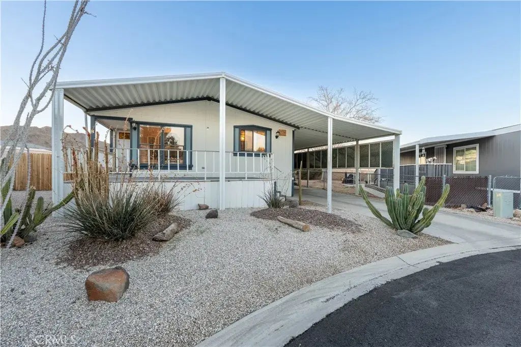 Nestled in the charming Los Ranchos community, this immaculate double-wide home offers both comfort and convenience. A covered carport and privacy fencing provide a welcoming entrance, leading to a spacious open floor plan where the living room seamlessly connects to the dining area and stylish kitchen with a breakfast bar. Additional features include an inside laundry room, storage sheds, and well-maintained outdoor spaces. Residents can enjoy fantastic community amenities, including a clubhouse, swimming pool, sports courts, and a serene fishing lake. Experience the best of Apple Valley living in this inviting home.