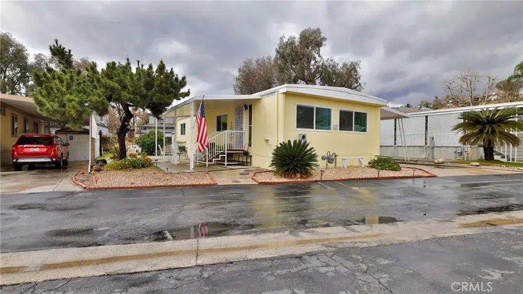 Come explore this stunning mobile home in the highly desirable 55+ community of Casa Volante Estates. Featuring 2 spacious bedrooms, 2 bathrooms, and 1,040 sq ft of comfortable living space, this home offers a cozy living and dining room combo and a fully equipped kitchen. Stay comfortable year-round with central A/C and heat. Plus, the washer, dryer, and refrigerator are included as a bonus from the seller. The full guest bath includes both a tub and shower. Recent updates include fresh paint inside and out, dual-pane windows (installed in December 2023), new laminate flooring in the master bedroom, and a new toilet in the master bath. Enjoy a low-maintenance backyard and relax under the covered patio. Casa Volante Estates offers fantastic amenities, including a pool, spa, hot tub, clubhouse, billiard room, card room, and banquet area. Pets are welcome check with the manager for more details. Conveniently located near shopping, grocery stores, and right across from the iconic Route 66 Trailhead. With a newer A/C and water heater, and a space rent of just $1,285.19, this home is a must-see! Dont miss outschedule a visit before its gone!