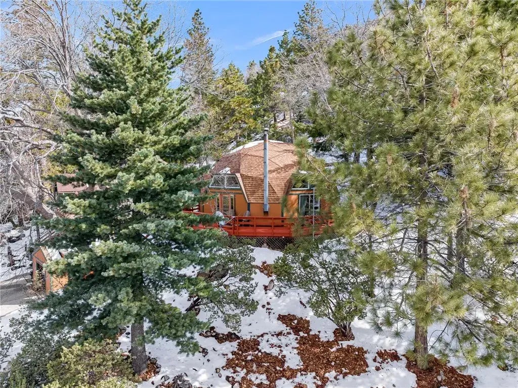 Welcome to the Dome Home in the scenic community of Angelus Oaks. Perfectly positioned at the end of Cedar Ave, this custom property boasts of mountain living with the comforts of home. The interior of the home is open with the dome shape taking center stage as you enter. Get cozy by the fire in the living room that includes views, a center wood burning stove, and a truly one-of-a-kind acoustic experience. Adjoining the living room is the dining area that has that at home cabin feel. The kitchen is oversized and features custom hand made cabinetry, ample counter space, and standard appliances. Read a book or simply take in the snowy views from the large window in the office addition on the back of the home. The guest bedroom downstairs is private and has easy access to the bathroom and laundry room. The primary bedroom is a true sanctuary and is located on the second floor of this amazing home. The bedroom provides the best views of the mountains and the interior experience of the dome itself. This room also includes a private main bathroom complete with walk in shower. The wrap around deck showcases the amazing views of the San Bernardino National Forest. Imagine yourself sitting on the deck, taking in the fresh mountain air as you sip your morning coffee. Located just minutes from Redlands, this property provides mountain living with the close convenience of shopping, dining, and more! This could be your opportunity to own one of the most unique properties in all Southern California.