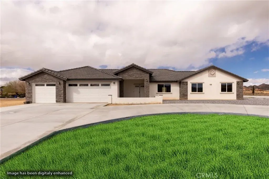 Just Reduced!! Stunning New Construction Home. Discover this brand-new home in the highly desirable area of Apple Valley. Situated on over an acre of land, this home offers plenty of space and privacy while remaining close to modern conveniences. Featuring 4 spacious bedrooms and 3 bathrooms, the thoughtfully designed split floor plan includes a mega kitchen with abundant cabinetry, a walk-in pantry, and magnificent countertops with a center islandperfect for entertaining. The expansive living and dining areas flow effortlessly into a separate family room with a charming fireplace, creating a warm and inviting atmosphere. Retreat to the spacious master suite, which boasts an oversized bathroom with dual sinks, a separate walk-in shower, a relaxing garden tub, and a huge walk-in closet. Enjoy low electricity costs with fully paid solar, and take advantage of the homes prime locationjust minutes from shopping, schools, and easy highway access. Outdoor lovers will appreciate being only minutes from Hesperia Lake and the mall, while a short drive takes you to Lake Arrowhead and Silverwood Lake for weekend getaways. Plus, exciting developments are coming to the High Desert! The proposed Brightline Bullet Train station is set to enhance local connectivity, making this an even more attractive place to call home. Dont miss out on this fantastic opportunity to own a brand-new home in a growing and sought-after location!