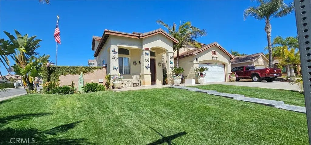 Dont miss the opportunity to own this beautiful home in the City of Rialto. This property features 4 spacious bedrooms, 2.5 bathrooms, and a bonus room downstairs. The downstairs area boasts stylish tile flooring, while the stairs are complemented by elegant wood flooring. The home also includes an indoor laundry room. Outside, youll find gorgeous landscaping with lush green grass, palm trees, and well-maintained planter areas. Being a corner lot, the propertys landscaping is even more impressive. The expanded driveway provides additional parking, and theres RV access via a side gate, offering plenty of space for your vehicles or toys. Ideally located near shopping centers, restaurants, schools, and easy freeway access.