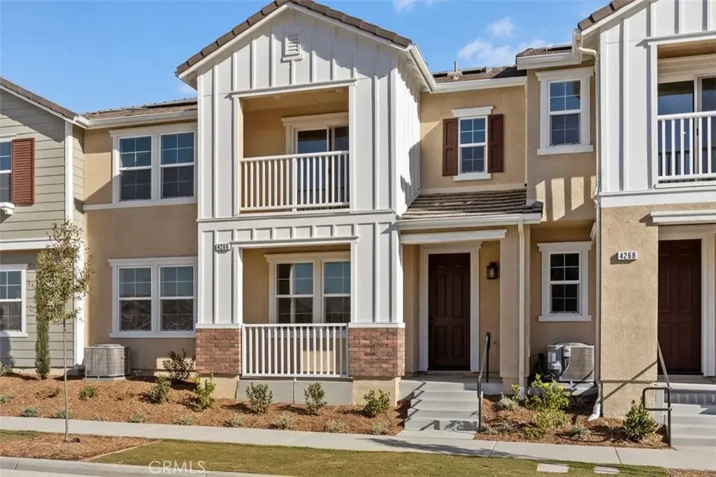 Belmont is a beautiful new condo resort-style community in the newer area of Ontario Ranch. This floor plan offers 1,880 sq/ft of open floor plan spread across 2 floors. Take note of the expansive 9-ft ceilings bringing a nice vaulted feel at the first floor when you walk in. This open floor plan features the living, dining and kitchen downstairs for maximum space in the living and dining areas. The stylish kitchen features white shaker panel door cabinets, large peninsula counter top area, huge walk in pantry, dining area, upgraded quartz counter tops with large single basin sink and luxury vinyl plank flooring throughout the downstairs. Our homes offer brand-new stainless steel appliances including a slide in gas stove, dishwasher and microwave. Additionally, the powder room is downstairs for everyones convenience. The upstairs leads right into an open loft the family can enjoy and two secondary bedrooms nearby. The laundry is also centrally located upstairs with a laundry sink as well. Those two bedrooms share a large hallway bathroom that has a tub/shower combination. The spacious primary bedroom is a short walk away and has a large walk-in closet, adjoining bath with cultured marble counter tops, and dual sinks with tile flooring to round out a great primary bathroom. There is also a large balcony accessible from the loft for everyone to relax at after a long day. Each home is built with uncompromising energy efficiency in mind such as a tankless water heater, smart thermostat, dual-pane low E glass windows and so much more to help ensure uninterrupted comfort all year