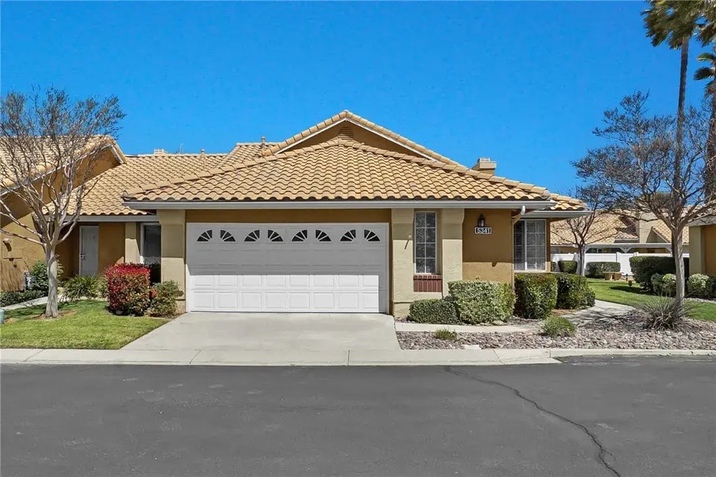 Wonderful Whitney Model- 2 bedroom + 2 ba + Spacious LOFT (1,356 sq) located in the beautiful 55+ gated Sun Lakes Country Club Community nestled in Baning. Both showers & bathrooms are beautifully remolded. Laminated floors for entire house including stair case and much more. Cost almost appx. $50,000 to do all upgrades. Ready to move in condition. Attached two car garage with many cabinets for storage. Have golf cart parking also. Coming into the home through the front door you will find the living room directly to your right with high vaulted ceiling, ton of natural light coming through the upgraded shutter windows, custom flooring, electric fireplace and flows seamlessly to the dinning room and kitchen. Directly in front of the entry are stairs leading to the spacious loft with vaulted ceiling, wood laminated new flooring, a ceiling fan and large window, the space can be used for an office, den or guest space! The kitchen has been beautifully upgraded with oak cabinets, granite countertops, custom backsplash, tray ceiling, has a deep sink and opens to the dinning area with recess light fixtures and a large sling door leading to the patio while also bringing an ample amount of natural light in. Master bedroom has a large walk-in closet and an attached master bathroom with sliding bare door, upgraded flooring, quartz countertop, totally remodeled with upgraded shower. The secondary bedroom is a good size with laminated flooring and has a large closet. The outdoor space year-round, which is fully fenced in with an upgraded vinyl fence and has a covered patio area a well a a
