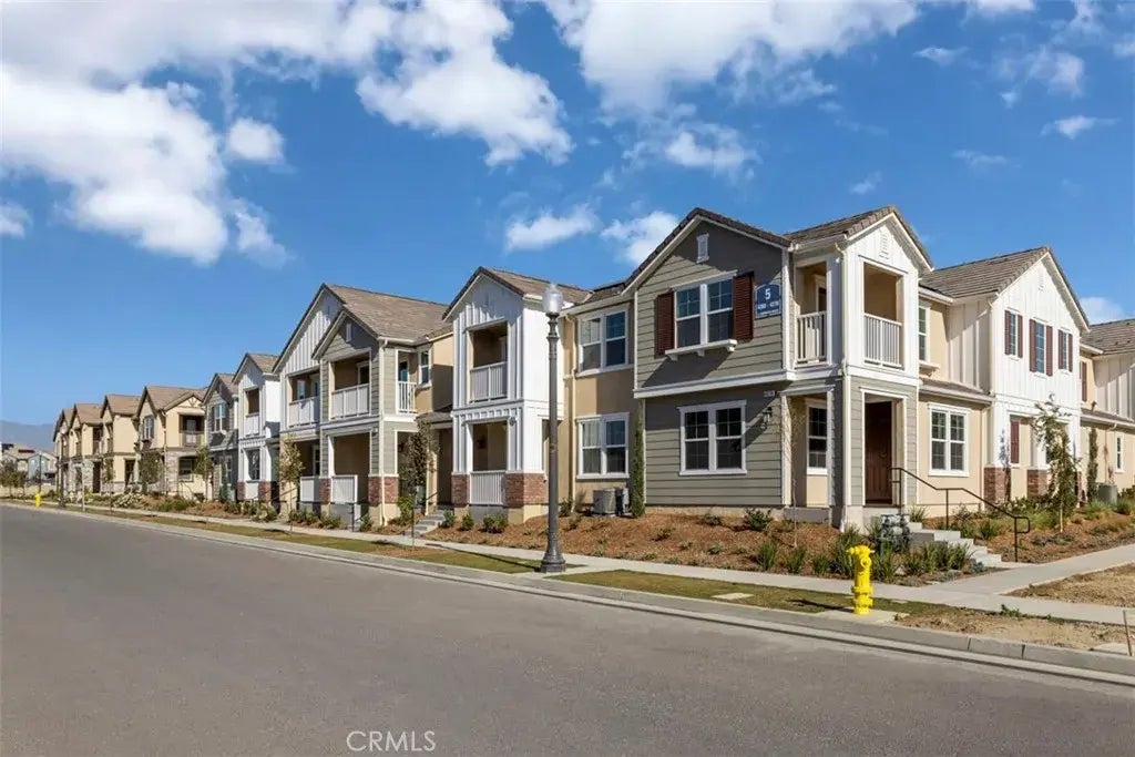 Beautiful resort-style community in the heart of Ontario Ranch. This floor plan offers 2,051 sq/ft of open floor plan spread across 2 floors. Take note of the expansive 9-ft ceilings bringing a nice vaulted feel at the first floor when you walk in. This open floor plan features the living, dining and kitchen downstairs. The stylish kitchen features white shaker door cabinets, large kitchen island, walk in pantry, dining area, upgraded quartz counter tops and luxury vinyl plank flooring throughout the downstairs. Our homes offer brand-new Whirlpool stainless steel appliances including a slide in gas stove, dishwasher and microwave. Additionally, the powder room and laundry room are downstairs. The upstairs leads right into an open loft the family can enjoy and two secondary bedrooms nearby. Those two bedrooms share a large hallway bathroom and has a tub/shower combination with double sinks. The spacious primary bedroom with a large walk-in closet, adjoining bath with cultured marble counter tops, dual sinks, an extended vanity with knee space and walk-in shower. There is also a private balcony from the primary bedroom for you to relax at after a long day at the office with the view of the Pool. Each home is built with uncompromising energy efficiency in mind such as a tankless water heater, smart thermostat, dual-pane low E glass windows and so much more to help ensure uninterrupted comfort all year long. All that is complemented by a solar energy system as well to maximize savings. Community amenities include two parks, pool and spa, dog park, and pickle ball courts. Easy a