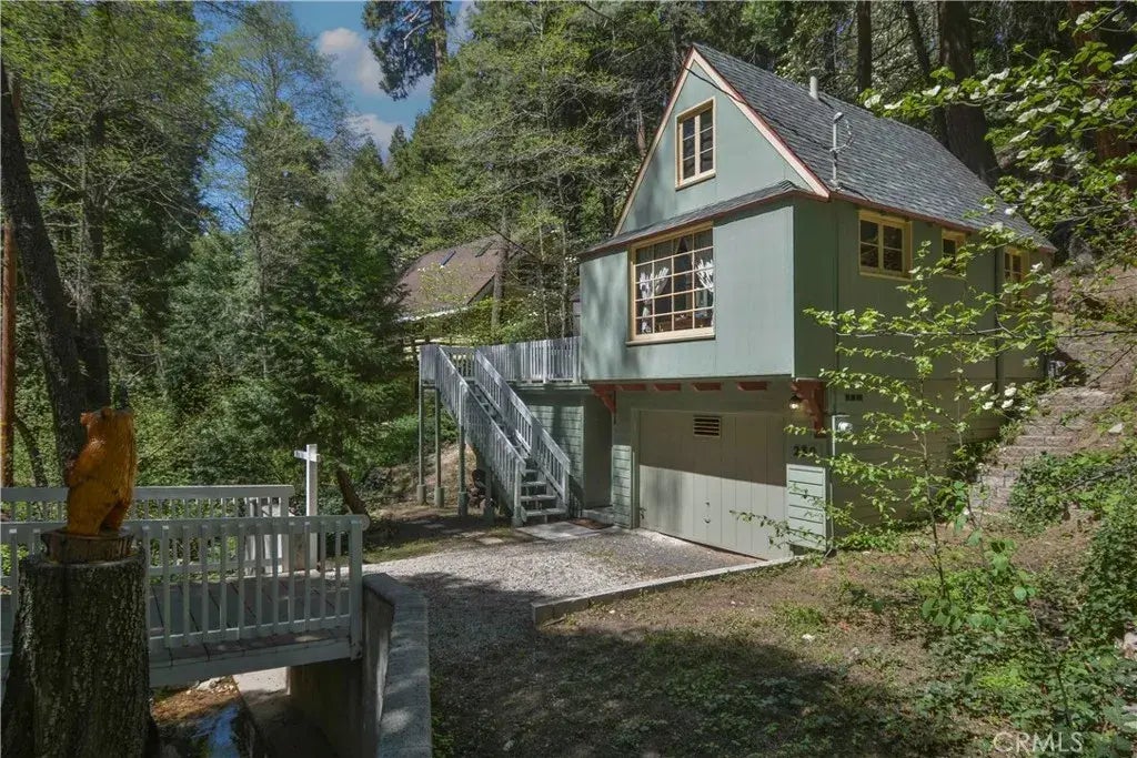 Step back in time and fall in love, like i did, with this enchanting 1939 vintage cabin, nestled among the pines and on a seasonal creek. This one of a kind beauty offers lake rights and captures the essence of mountain living from a time gone by. Inside you'll find original wood floors, knotty pine walls, original windows and screens with the original hardware that tell a story of a simpler time. The cozy kitchen is a dream for any nostalgic cook, featuring wood countertops and glass knobs on the drawers, farmhouse sink, the original dutch door to the deck, a reproduction 6 burner range and an eating area overlooking the creek. The main level includes a bathroom, family room with fireplace, main bedroom, and kitchen. Upstairs are two more loft bedrooms. There is a spacious front deck and a side patio to enjoy your morning coffee listening to the creek. Downstairs is a separate studio apartment with its own bathroom and kitchenette ideal for guests or just storage, maybe one day this could be permitted. This location is REALLY close to the lake - zip on down to the entrance of Orchard bay to drop a kayak in the lake. The garage will come in handy and also has laundry hookups. With easy year-round access, timeless style, and close proximity to the lake, this is your chance to own a piece of lake arrowhead history.