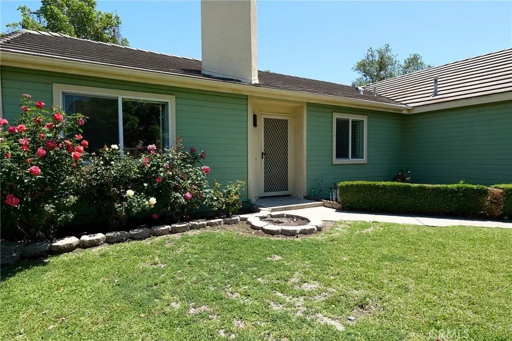 This is a charming, affordable, 3-bedroom, 2-bath home in a well-kept neighborhood with a pretty yard. White plantation shutters throughout. The den could be made into a fourth bedroom. Freshly painted interior with all new flooring (carpet in bedrooms, luxury vinyl plank elsewhere) make this your move-in ready home. The primary suite has a soaking tub, separate shower, water closet and linen closet. Vaulted ceilings throughout and skylights in the entryway and primary suite give the home an airy, open feeling. Granite countertops in the kitchen and bathrooms. Matching granite on the living room fireplace and windowsills in the living room and den. Laundry room inside. Upgraded bathroom mirrors. The home backs onto an extensive private greenbelt below with walking paths, stream, benches and playground - must be seen to be appreciated. The cozy, low maintenance bricked back yard has a patio cover, rose bushes and mature greenery. The front yard has rose bushes, a beautiful shade tree, and a verdant lawn. Automatic sprinklers on timers. Community pool on Cheshire Lane. Automatic garage door opener. The roof was replaced in approx. 2020.
