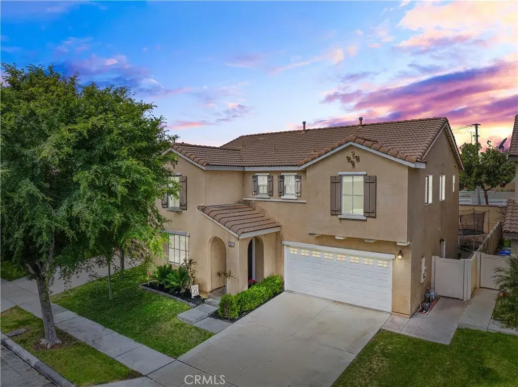 Welcome to your dream home in the highly sought-after gated community of Elm Park! This beautifully maintained 3,054 sq ft residence features a perfect open-concept layout with newer laminate flooring and ample living areas that blend comfort and functionality. The updated kitchen is a chef's dream, showcasing granite countertops, freshly repainted cabinets, modern finishes, and a large center island- ideal for entertaining or casual family meals. A convenient downstairs bedroom and full bath offer flexibility for guests, in-laws, or a home office. Upstairs, you'll find a generously sized loft, three additional bedrooms, full bathroom, large laundry room with cabinets and sink, and a luxurious primary suite complete with two walk-in closets and a beautifully appointed en-suite bathroom. All bedrooms are spacious and include ceiling fans for year-round comfort. Step outside to your private backyard retreat-perfect for relaxing, hosting, or enjoying quiet evenings. The community features resort-style amenities, including a sparkling pool, spa, picnic area, and playground. Ideally located near shopping, dining, and close proximity to the 210 freeway, this home truly offers the best of comfort, convenience, and community living. Come see why this home checks all the boxes before it's gone!
