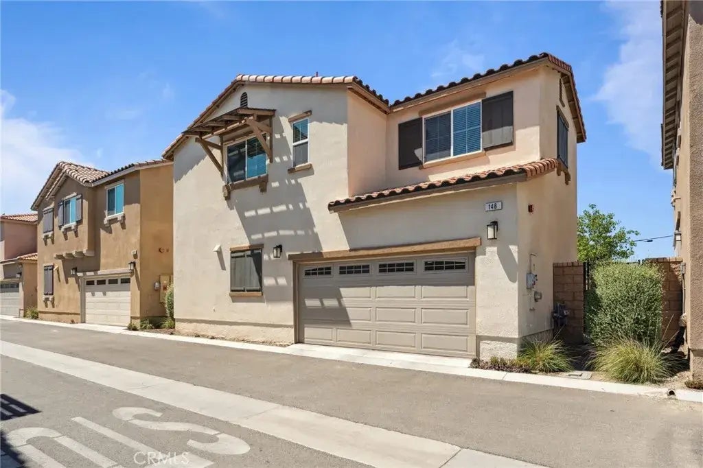 Welcome to this beautiful detached condo in The Pacific Avenue gated community in Perris, CA. This home offers modern living in a prime location near schools, shopping centers, restaurants, and convenient access to the 215 freeway. The community features family-friendly amenities including a pool, playground, dog park, and a clubhouse. Step inside to an inviting open-concept layout on the main floor where the living room, dining area, and kitchen flow seamlessly together. The kitchen boasts granite countertops, stainless steel appliances, and ample cabinet space. Luxury vinyl plank flooring spans the entire first level, which also includes a half bathroom, a storage closet, access to the two-car garage with epoxy flooring, a tankless water heater, and an electric car hookup, and a private backyard area. Upstairs, youll find a cozy loft, a convenient laundry room, and three spacious bedroomsall with ceiling fans. The primary suite features its own en-suite bath, while the two secondary bedrooms are connected by a Jack-and-Jill bathroom. Additional features include a whole house QuietCool fan, solar panels (leased), and generous storage throughout. Dont miss your opportunity to own a modern home with energy-efficient upgrades in a sought-after gated community. Schedule your private showing today!
