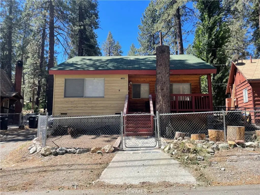 Charming Wrightwood cabin just a short walk to town! This 3 bed, 2 bath home (including a spacious upstairs addition) offers approximately 1,123 sq.ft. of cozy mountain living (buyer/tenant to verify). The main level features an open floor plan with two bedrooms, cedar-lined closets, built-ins, and a statement fireplace with vintage charm. The upper level includes a large bedroom and full bathideal for guests, a home office, or extra living space. Fully fenced yard and detached storage shed provide added privacy and convenience. Nestled among the pines in a peaceful mountain setting, this home blends comfort and character in a prime Wrightwood location. Enjoy nearby shops, dining, hiking, and outdoor recreationall just minutes away. A perfect fit for those seeking a serene mountain lifestyle with small-town charm.