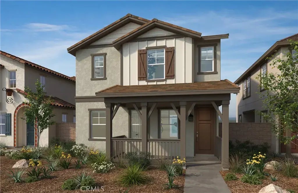 Highly desirable CORNER location with one of the largest yard in Monet. Home is very bright with lots of natural light. Monet's largest 1820 plan with 4 bedrooms (loft converted to 4th bedroom), 2.5 bath and large front porch. Front porch will be facing a future Sports Park. Home features soft close mocha shaker cabinets, Quartz beige kitchen countertop, Island with single basin sink, Whirlpool electric appliance package (microwave, dishwasher, stove/oven), double sinks in both primary & bath 2, and Luxury wide vinyl plank & textured carpets floorings thru out, Future community amenities include community pool/spa/meeting center, Pickleball court, BBQ/Picnic area and park. Also Monet is part of great schools: Cal Aero Academy, Legacy Academy, and Chino Hills High School. Photo is a rendering of the model, you can either purchase or lease the solar