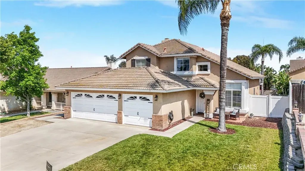 Welcome to the heart of Orangecrest! This charming two-story home is nestled in a desirable neighborhood. An immaculate 1,712 square foot residence on an outstanding 8,273 square foot lot offers four spacious bedrooms and three full well-appointed bathrooms. One bedroom and full bathroom is on the main floor. This turnkey home possesses a harmonious blend of traditional charm and modern upgrades, featuring elegant tile flooring on the main level and luxury plank vinyl flooring upstairs. Two other spacious bedrooms upstairs with another full bathroom. The master bedroom features a walk-in closet and a beautiful granite countertop bathroom. The heart of the home is the gourmet kitchen, complete with more gleaming granite countertops, providing both functionality and style. The layout seamlessly connects the kitchen to the inviting living and dining areas, overlooking the beautiful backyard creating an ideal space for family gatherings and entertaining guests. Step outside to discover your private backyard oasis, highlighted by a sparkling pool and spaperfect for relaxation and outdoor enjoyment. The expensive three-car garage offers ample storage and parking space, catering to all your needs. Located within a community renowned for its excellent schools, parks, grocery stores, shopping, and freeway access nearby. With its pristine condition and thoughtful design, this property presents a rare opportunity to own a piece of Orangecrest's sought-after real estate, a place you would be honored and pleased to call home.
