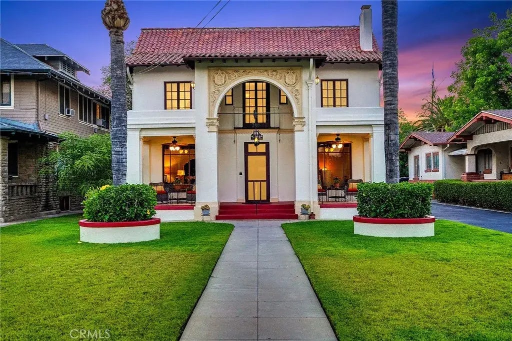 Originally built in 1909 and thoughtfully reimagined in 1937 by G. Stanley Wilson, arguably Riversides most prolific architect, this remarkable home is a one-of-a-kind treasure in the citys historic core. Wilson, best known for shaping many of Downtowns most iconic landmarks, brought his era-defining vision to this later-career renovation blending Italianate and Spanish Renaissance features throughout the home. This is the only home of its kind that we're aware of in the City of Riverside, and its architectural pedigree is matched by a surprisingly functional floor plannot common among historic residences. Inside, youll find beautifully preserved details: stenciled beams, Claycraft tiled fireplace, stained and plate glass windows, and a cast iron radiator with intricate reliefall just in the living room! You find that the details continue throughout the property. The main level features a spacious kitchen, dining room, sun room, living room, laundry room, and a bedroom with an adjacent three quarter bath. Upstairs, a hallway illuminated by French doors leads to three secondary bedrooms, two of which open onto private rooftop patios, as well as a hall bathroom and the primary suite. There's space for many people on the upper level and its full of character with it's classic hardwood floors, french doors and custom windows. However, it's the upstairs hall bath is among our favorite aspects with it's rose colored tile and black ceramic fixtures it's a wonderfully preserved vintage bathroom. The home also includes a large finished basement. There is a family room/den as well as