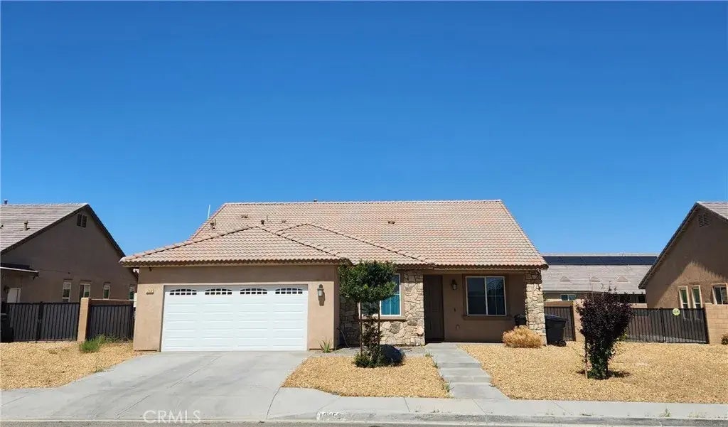 Highly Desirable Newer Built Victorville Neighborhood. Close to the the 15 Freeway. This Culdesac Home has 3 Bedrooms 2.5 Baths, Solar on Lease (Buyer to Assume), Attached 2 Car Garage and a Good Sized Lot. House was built in 2019 and is in Great Condition. Outside Features Tile Roof, Energy Efficient Windows, Large Concrete Driveway, Sidewalks to Entry, Concrete Slab Patio Area on the Front Porch, and Double Gate for RV Parking with Sewage Line available. There is a Front Yard and Fully Fenced Back Yard with Block Wall & Wrought Iron Gates. Large Built In Back Yard Patio with Plenty of Room for BBQ'S, Entertaining, or Just Plain Relaxing. Inside Features Central Air/Heat, Carpet, Laminate Wood Look Plank Flooring, and French Doors Leading Out To Patio. There is a Living Room, Large Open Family Room with Fireplace, and a Dining Room. All 3 Bedrooms are a Good Size and have an Ample Amount of Closet Space. Master Bedroom has a Walk-In Closet and its Own Bathroom. Master Bath features Oval Tub with Separate Shower and His & Her Sinks. The 2nd Full Bath is off Hallway. Kitchen is Spacious with Lots of Cabinet Space, Nice Countertops, Stainless Steel Sink, Refrigerator, Stove/Oven, Dishwasher and Microwave. For Easy Back Yard Access There are Gates on Both Sides of the House. Located Close to Schools, Restaurants, Shopping and Commuter Friendly. Show and Submit Your Offer Today!