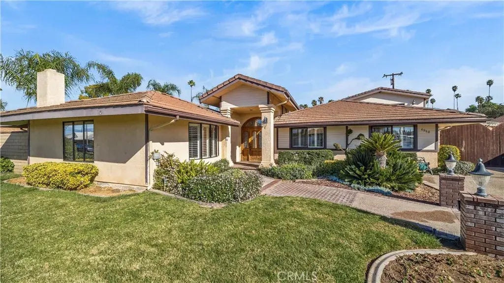 Welcome to your Canyon Crest home. Numerous amenities and improvements are at hand for your comfort, convenience and enjoyment. The beauty of this meticulously cared for home has to be seen in order to truly appreciate the fine craftsmanship and the quality of the materials used throughout this entertainer's delight. The attention to detail is evident from the tray ceilings to the striking marble tile, exotic Tigerwood hardwood and carpet flooring. This home features three wet bars complete with a brass rail at the sit-down bar. There's a built-in wood paneled ice maker that compliments the wood paneled built-in Sub-Zero refrigerator. You'll enjoy the built-in gas BBQ while entertaining poolside. The in-ceiling and in-wall speakers keep the music flowing throughout the home, the large covered back patio and the upstairs bonus room above the detached garage. The bonus/game room has a gorgeous wood ceiling with an exposed beam. The large garage offers abundant storage cabinets, a large worktop counter, a 1/2 bathroom (convenient while enjoying the pool and jacuzzi) and a washer/dryer hook-up. This laundry area is in addition to the laundry/utility room located inside the main house. Some of the additional features include skylights, an impressive 12-foot-high entryway, a new dishwasher and a new stovetop, an electric driveway gate with remote control, numerous custom built-in shelves and cabinetry with glass fronts, all lit and dimmer controlled for setting the perfect mood, recessed lighting throughout also all dimmer controlled, along with the exterior under eave lighting a
