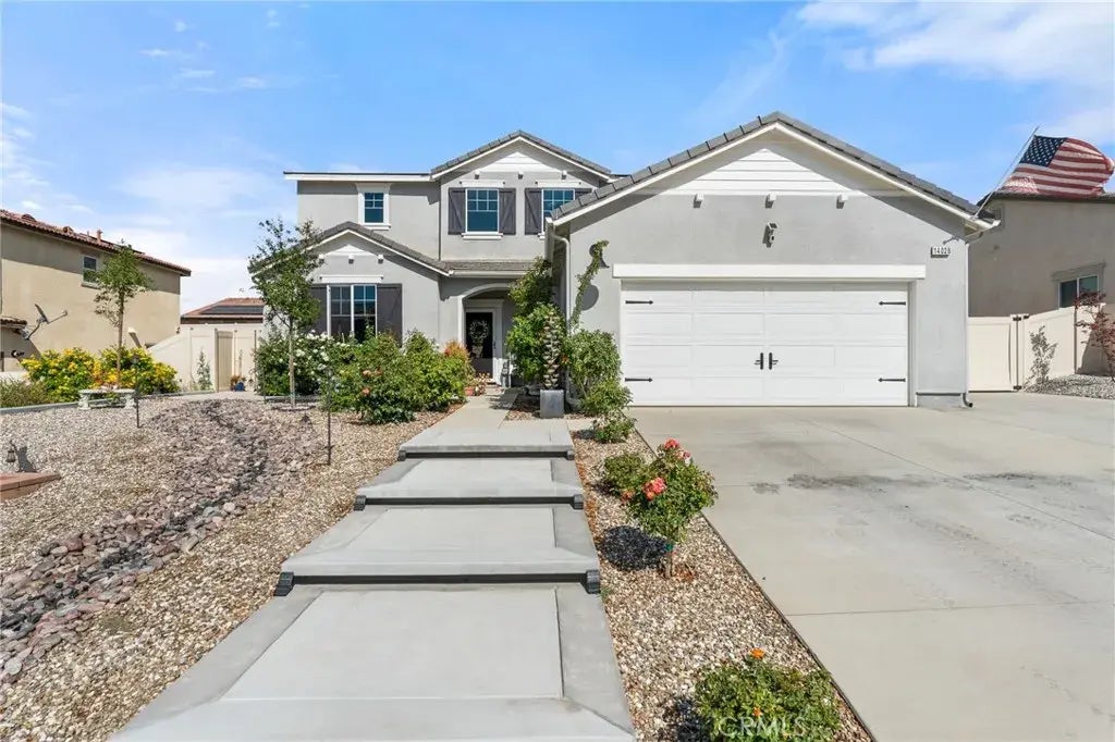 Beautifully updated dream home that features FULLY OWNED SOLAR, RV Parking and is situated on a premium lot!! Enjoy the upgraded front landscaping and custom concrete step entry way, along with the extra wide driveway with additional parking and gated RV access. So many interior upgrades as well, including luxury vinyl plank flooring, remote controlled blinds, updated laundry room with soaking sink and so much more. There's also a conveniently located downstairs bedroom and close bathroom access, making it a perfect option for family, guests, or potential income opportunities. The foyer leads you to the great sized family room that opens up to the dining area and kitchen. The amazing open kitchen features recess lighting, center island with bar seating, immaculate appliances and access to the walk in pantry. Upstairs, the primary suite features amazing views to enjoy and access to the en-suite primary bathroom with a separate shower and bathtub, dual vanities, and large walk in closet area. The remaining bedrooms are also generously sized. The upstairs loft that can be utilized as an extra family room, perfect for entertainment and relaxation! The back yard features a large covered patio with built in lighting and ceiling fans, lush grass area and extended concrete pad. Other notable features include new rain gutters, water softener system, upgraded garage door opener with security camera, & security front door screen. Located in close proximity to freeways, parks, schools, shopping and amenities. Nestled in the vibrant Olivewood Community for you to enjoy the incredible fe