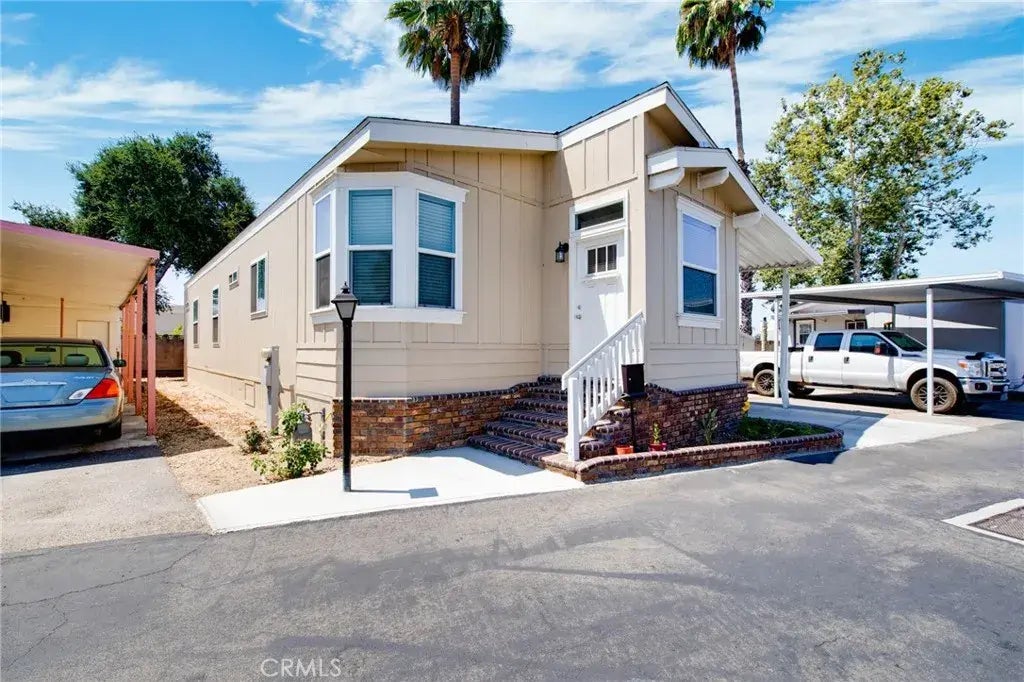 Your Peaceful New Chapter Starts Here Brand New 55+ Manufactured Home Priced to Sell Fast! Welcome to the life youve been dreaming of where every morning feels like a fresh start in your peaceful backyard, perfect for fruit trees, a garden, or simply soaking in the quiet. This 2023 brand-new manufactured home still has that new home feel and features a bright, open floor plan with stunning brand-new cabinets in a warm brown tone, a huge pantry, and an oversized KITCHEN ISPAND so spacious, you could host a cooking class right at home. The kitchen comes fully equipped with all stainless steel appliances included refrigerator, built-in microwave, oven/range, and dishwasher ready for you to move in and start living. The primary bedroom is your private retreat, complete with its own adjoining bathroom with a walk-in shower, perfect for relaxing at the end of the day. Youll love the roomy laundry area with washer and dryer hookups, making life that much easier. All of this is set inside Foothill Village, a welcoming 55+ community in Pomona, where neighbors become friends, the pool and clubhouse are just steps away, and youre walking distance to markets, restaurants, and everyday essentials. With the 210 and 10 Freeways nearby, plus Pomona Valley HOSPITAL and Claremont Village just minutes away, this is your perfect blend of convenience and peace. And yes you can own this beautiful home over $100,000 below market value with a SPACE RENT of $900/month. Your peaceful new chapter starts now!