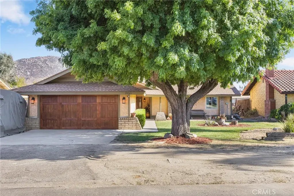 Welcome to 28943 Gifford Avenuewhere custom craftsmanship, comfort, and convenience meet in the heart of East Moreno Valley. This beautifully remodeled Ranch-Style home offers 4 bedrooms, 2 bathrooms, and 1,448 square feet of living space on a spacious 8,276-square-foot lot. From the moment you arrive, youll be captivated by its charm and curb appeal, highlighted by a newly installed Mediterranean Knotty Alder front door and matching garage door that set the tone for the warmth and character found inside. Step into the inviting entryway, where a striking custom mosaic tile centerpiece and exposed oak wood ceiling beams create a rich, rustic ambiance. The living room features real hardwood flooring and a stunning Spanish-style fireplace, while timeless wood baseboards and elegant fixtures tie every detail together. The heart of the home is the chefs kitchen, complete with Mesquite wood cabinetry, travertine floors, and a beautifully designed overhead stove faade that blends function and style. Both bathrooms showcase thoughtful upgrades, including a custom Spanish-style vanity that adds an old-world touch. Energy-efficient features include dual-pane windows, an on-demand tankless water heater, a new electrical panel, dual QuietCool attic fans, and an Ecobee smart thermostat with Siri voice control and mobile app access. Outdoors, enjoy easy maintenance with an ORBIT 6-zone irrigation and drip system, also remotely controlled by app. For peace of mind, a 6-camera security system with mobile monitoring is also included. Perfectly positioned in a tranquil neighborhood, this hom