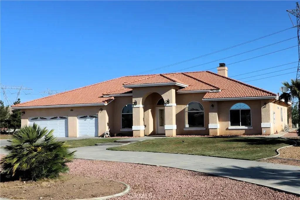 Custom gated East Oak Hills Estate on a paved road with 2.3 acres of land on a culdesac! This is a desirable area and is commuter friendly with easy access to the 15 Fwy. The entry of the property features a powder coated rod iron fence where you enter the property via one of the two electric sliding gates. The home has an open floor plan as you enter through the living room with fireplace with mirror above. This is adjacent to the kitchen with a granite center island featuring a Jennair Cooktop with grill, reverse osmosis system, breakfast bar, dual ovens, built in microwave, and 4 burner cooktop. The primary bedroom has its own fireplace and a door leading to the patio to escape outside without entering the main part of the house. The grand primary bath includes a walk-in closet with a separate shower and oversized jetted spa tub. One of the bedrooms features a separate 1/2 bathroom and sliding door with access to the patio. The garage is oversized with plenty of space for a work bench and cabinets. Inside you will also notice the overhead storage and water softener for the entire home. The exterior is tastefully landscaped with rock, fruit trees, a concrete pad for a future spa with a 220 Volt adjacent connection. The RV garage is 1,000 sq ft and measures 25 x 40 and is located towards the rear of the property adjacent to a fence which provides access to the easement of the property. The RV Garage is perfect to store all your toys! The covered patio is an entertainers delight with approximately 1,200 Sq. Ft of space. Potential to build an ADU and plenty of space to park