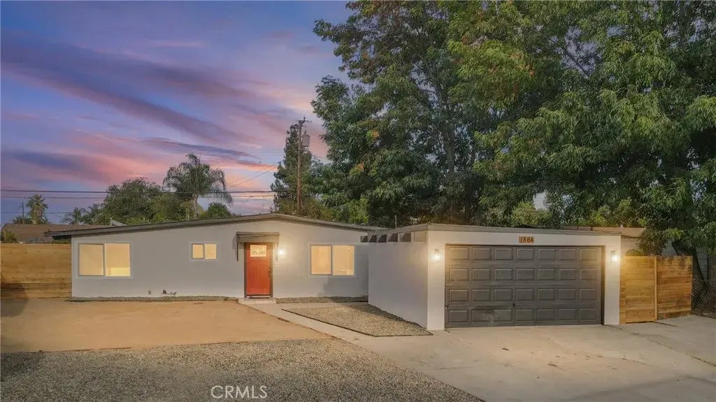 Mid-century modern dwelling in the heart of Pomona and near everything: 32 minute drive to Disneyland, 10 minutes to Fairplex, 35 minutes to DTLA and 37 minutes to Dodger's Stadium. This home boasts a blend of modern upgrades and timeless design. As you step inside, you'll immediately appreciate the luxury vinyl flooring that runs throughout and paired with sleek new 4.75" baseboards and a freshly painted interior. The home features windows that invite lots of natural lighting to fill every room and creates a bright and airy home. The spacious kitchen has been transformed with brand-new shaker cabinetry with large entertainment island, complemented with Quartz countertop and top-of-the-line appliances, perfect for both daily cooking and entertaining. The bathroom has been tastefully remodeled with new LED mirrors, modern double vanity, floating shelves, updated toilet, frameless shower door and stylish new lighting fixture. Other upgrades include new doors, casings and hardware throughout, designer closets, new lighting and a newly installed drought tolerant landscaping that adds instant curb appeal. You will posses the opportunity to potentially convert the 2-car detached garage into a 2nd unit or ADU. Large driveway fits Toys and guests vehicles (potentially 5 vehicles). Your future house combines mid-century charm with all the modern conveniences you need for today's living standards. BUT WAIT! The back yard....It has a huge concrete slab with a 31'X15' wooden patio which is surrounded by layers of gravel stone, Palm Springs DG and mature landscape AND a horizontally bui