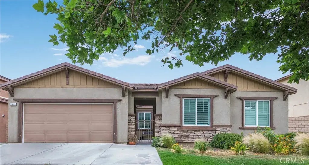 Welcome to this spacious and beautifully designed single-story residence offers 5 bedrooms and 3 full bathrooms, thoughtfully laid out in an open concept floor-plan that blends comfort and functionality. Step through the charming courtyard entry into a bright and inviting interior featuring a formal dining room, a versatile den perfect for a home office, playroom, or guest space, and a generous living area that flows seamlessly into the kitchenideal for both everyday living and entertaining. The kitchen, with plenty of counter space, overlooks the main living space and is perfect for gathering with family and friends. All bathrooms include double sinks, offering convenience, and the primary suite features a large walk-in closet for ample storage. Enjoy the outdoors year-round under the covered patio, perfect for relaxing or hosting gatherings. This home also comes with owned solar panels! Located in the vibrant Rosena Ranch community, residents enjoy resort-style amenities including an Olympic-sized lap pool and spa, splash park, clubhouse, state-of-the-art fitness center, and a picnic area with barbecuesperfect for weekend fun. This home combines style, space, and lifestyle in one of the Inland Empires premier communities!