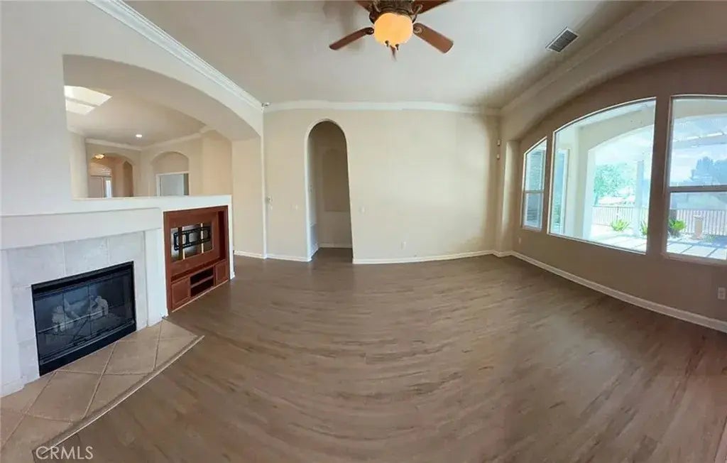 55+ Community of Trilogy at Glen Ivy, Laguna Model. Smart planned community with all the amenities you could wish for. Wood shutters throughout with an open kitchen and recessed lighting. Master bedroom with walk in closet and slider opening to covered deck overlooking the Gold Course, 9th & 10th fairways. Morning coffee and evening sunsets have peaceful views of the course and the mountains from the back and side patio areas. Calming fresh wall color, tile and plank flooring, ceiling fans and a 3rd room for office, guest room, etc.
